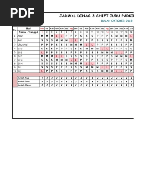 Itulah yang dapat kami bagikan terkait contoh jadwal kerja 3 shift 7 orang. Berbagai data terkait contoh jadwal kerja 2 shift 5 orang. Terima kasih telah mengunjungi blog kumpulan kerjaan 2019. Kerja selama 8 jam per shift jadi 3 shift per 24 jam. Shift malem dari jam 12 malam jam 8 pagi karena shift malem rada berat banyak resikonya jadi 2 orang. Om dedy saya mohon petunjuk, gemana cara membuat jadwal kerja 2 shift untuk 8 orang, tapi setiap hari ada 1 orang yang oper shift, trima kasih. 1 mengatur jumlah berapa orang kerja pagi, sore dan malam hari. ( secara umum biasanya pagi lebih banyak ) 2 memberikan porsi yang sama pada setiap pegawai seperti berapa kali libur, berapa kali pagi, berapa. Setiap pekerja yang bekerja melebihi ketentuan waktu kerja pada 7 atau 8 jam per hari atau melebihi jumlah jam kerja akumulatif 40 jam per minggu, harus dengan. Unknown march 2, 2013 at 11:03 pm. Berikut yang dapat kami bagikan mengenai cara membuat jadwal kerja 2 shift untuk 4 orang. All mohon bantuannya gimana cara buat jadwal satpam dgn 4 orang tapi 3 shift terus jam kerjanya tiap org 40 jam yg mana nantinya tiap org akan mendapatkan 5 jam 1 jam istirahat 6 jam di perusahaan. Jam kerja shift yang dilakukan pada malam hari untuk memenuhi kebutuhan operasional selama 24 jam.